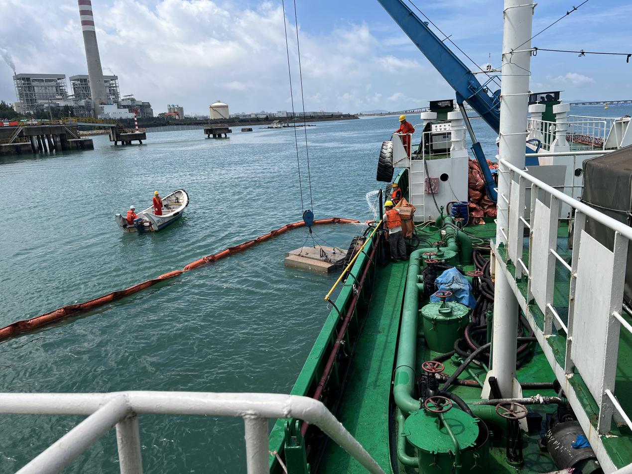 2024年6月19日, 为保障湄洲湾水域安全,**限度的处置溢油事故,防治海洋环境污染,进一步提高莆田市海神船务公司、湄洲湾电厂码头应对海上突发事件的应急能力,检验应急反应能力、物资保障能力、通信能力,应急人员的实际操作能力和应急设备的维护和运转情况。在湄洲湾电厂码头前沿水域进行溢油演习。我司派出专业清污船“闽富2号”、“海翔166”、“海翔966”及一艘40匹马力的快艇 参与演习。